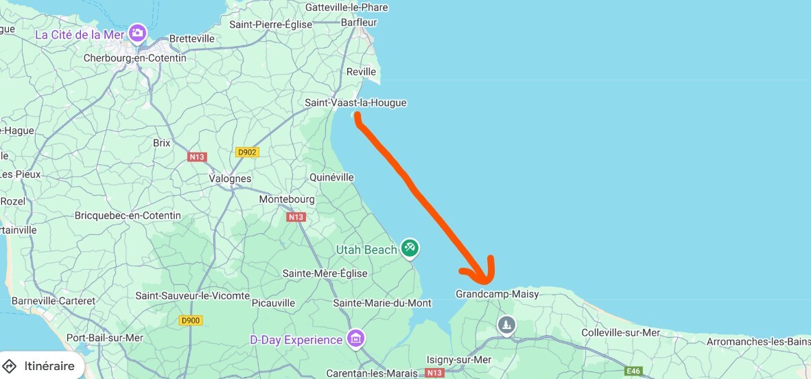 Quant au planchiste bien entrainé physiquement et mentalement heureusement, finalement si je me fie au schéma de la dérive, il allait presque toucher la côte de Grandcamp assez hospitalière au moment du sauvetage ?